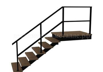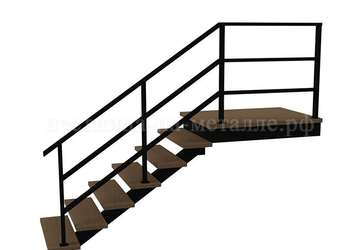 Металлические перила для лестничного марша с двойным ригелем. Дополнительно может быть изготовлен деревянный поручень. Стоимость работ индивидуальна для каждого проекта от указанной цены за погонный метр. Возможна установка перил на готовое изделие внутри или снаружи помещения.