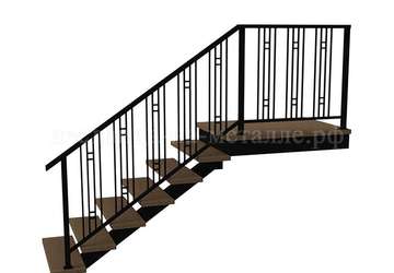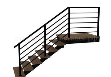 Металлические перила для лестничного марша с шестью ригелями. Дополнительно может быть изготовлен деревянный поручень. Расчет стоимости работ индивидуально для каждого проекта от указанной цены за погонный метр и используемых для монтажа комплектующих. Возможна установка перил на готовое изделие. Для заказа оставьте свой телефон, используйте ждя этого форму заявки. Услуга доставки и установки перил к месту монтажа доступна круглый год.