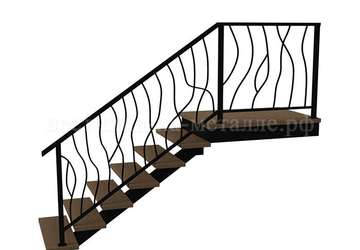 Металлические перила для лестничного марша с рисунком. Дополнительно может быть изготовлен деревянный поручень. Расчет стоимости работ отличается для каждого проекта в зависимости от указанной цены за погонный метр. Возможна установка перил на готовое изделие. Для заказа оставьте свой телефон в форме заявки на сайте.
