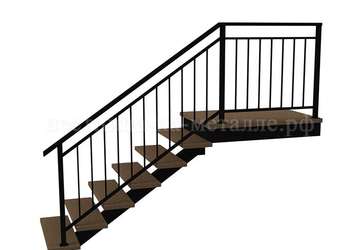 Металлические перила для лестничного марша с четырьмя ригелями. Дополнительно может быть изготовлен деревянный поручень. Стоимость работ индивидуальна для каждого проекта от указанной цены за погонный метр. Возможна установка перил на готовое изделие.