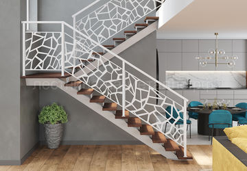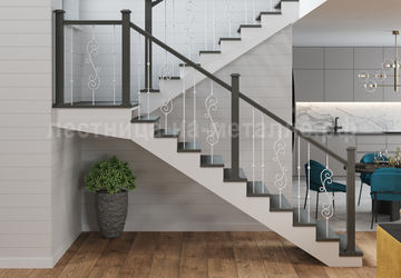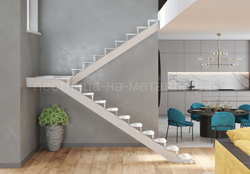 Металлические лестницы с промежуточными площадками на второй этаж, могут быть придуманы в самых разнообразных дизайнерских решениях, чтобы соответствовать общему дизайну интерьера. Металлические детали не подвержены коррозии при правильной обработке, это позволяет устанавливать косоуры в любых условиях вне зависимости от уровня влажности. Структура изделия долговечна и надежна с точки зрения безопасности при выборе оптимальной ширины и правильном расчете длины. Использование металлических косоуров делает конструкцию еще прочнее. Установка изделия достаточно проста и занимает не больше 1-2 дней.